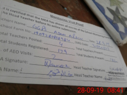 | Attendance Register | Head Teacher | MEA with School | Visit Proof |
