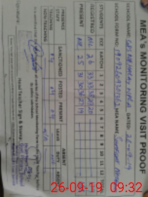 | Monitoring Date: 26-09-2019 | Start Time: 26-09-2019 08:36 AM | End Time: 26-09-2019 09:34 AM | Name of MEA: Sh**** Na**** | |