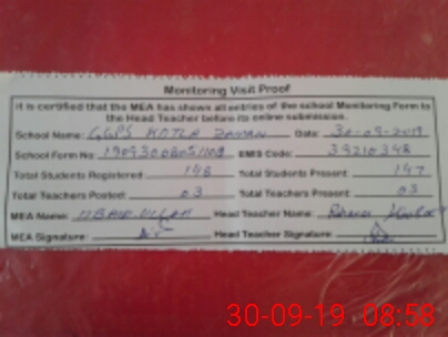 | Certified that this School was Inspected by the Undersigned MEA/DMO Today and the Information Stated Above is as Per Record. | |||||