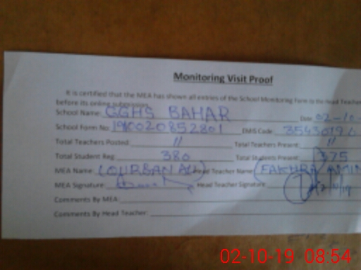 | EMIS Code: 35430190 | Name of School: GGHS BAHIR | |||