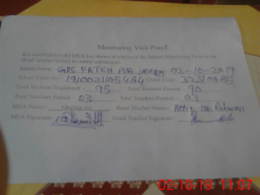 | EMIS Code: 32310085 | Name of School: GPS FATEH PUR JADEED | |||