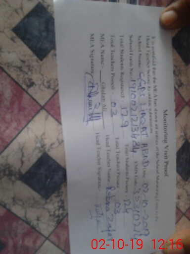| Certified that this School was Inspected by the Undersigned MEA/DMO Today and the Information Stated Above is as Per Record. | |||||