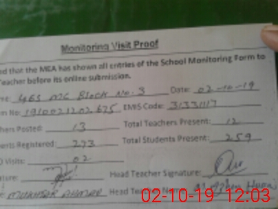 | Certified that this School was Inspected by the Undersigned MEA/DMO Today and the Information Stated Above is as Per Record. | |||||