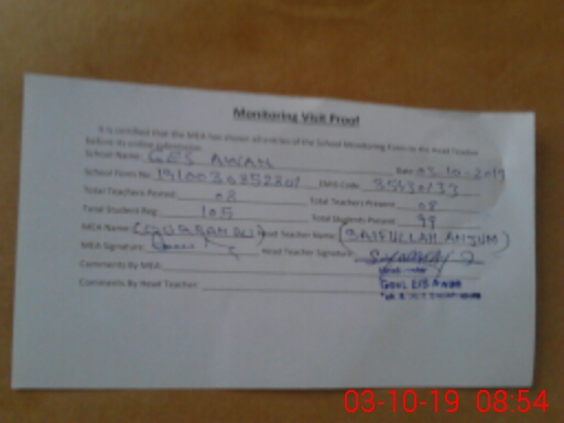 | Attendance Register | Head Teacher | MEA with School | Visit Proof |