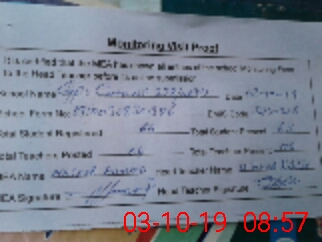 | Monitoring Date: 03-10-2019 | Start Time: 03-10-2019 08:30 AM | End Time: 03-10-2019 08:57 AM | Name of MEA: NA**** AH**** BN**** | |