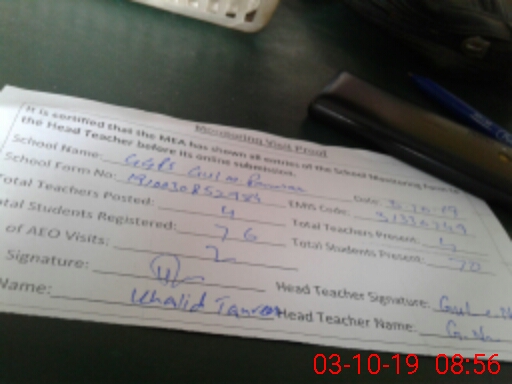 | Attendance Register | Head Teacher | MEA with School | Visit Proof |