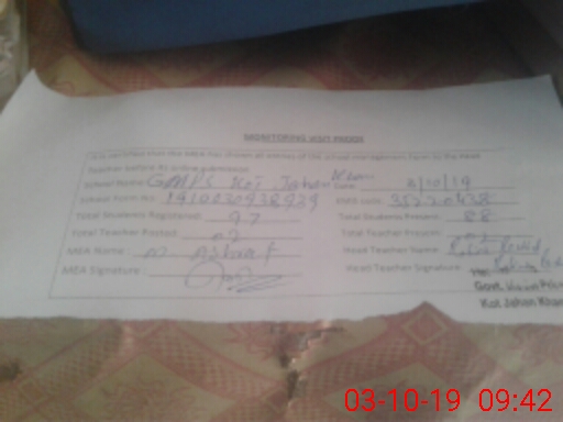 | EMIS Code: 35220438 | Name of School: GMPS KOT JAHAN KHAN | |||