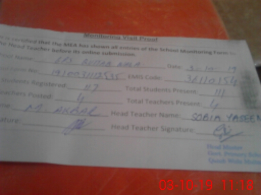 | EMIS Code: 36110154 | Name of School: GPS QUTTUB WALA ISMAIL ABAD P/O MULTAN | |||