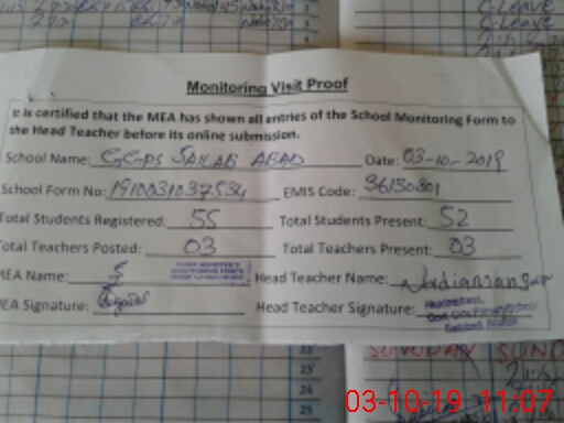 | EMIS Code: 36130801 | Name of School: GGPS SALAB ABAD | |||