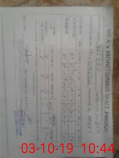 | Monitoring Date: 03-10-2019 | Start Time: 03-10-2019 08:55 AM | End Time: 03-10-2019 10:45 AM | Name of MEA: GH**** AB**** | |