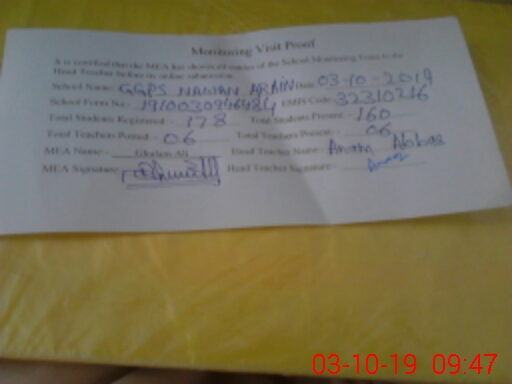 | EMIS Code: 32310216 | Name of School: GGPS NAWAN ARAIN | |||