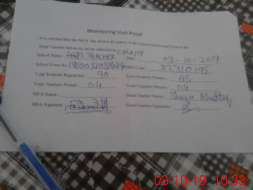 | EMIS Code: 32310195 | Name of School: GGPS TEACHER COLONY | |||