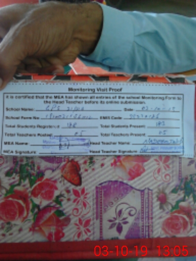 | EMIS Code: 39220125 | Name of School: GPS CHAK NO. 31 KB | |||