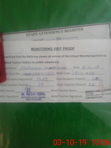 | EMIS Code: 38210929 | Name of School: GGHS MODEL JOUHAR ABAD | |||