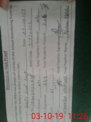 | Certified that this School was Inspected by the Undersigned MEA/DMO Today and the Information Stated Above is as Per Record. | |||||
