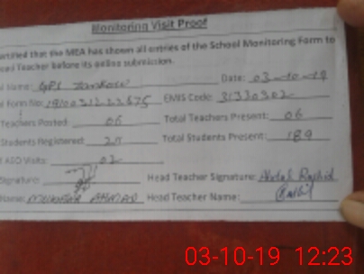 | Certified that this School was Inspected by the Undersigned MEA/DMO Today and the Information Stated Above is as Per Record. | |||||