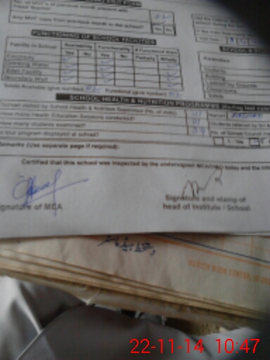 | Certified that this School was Inspected by the Undersigned MEA/DMO Today and the Information Stated Above is as Per Record. | |||||