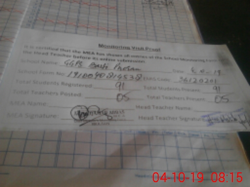 | Certified that this School was Inspected by the Undersigned MEA/DMO Today and the Information Stated Above is as Per Record. | |||||