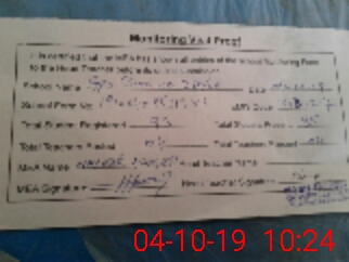 | Monitoring Date: 04-10-2019 | Start Time: 04-10-2019 08:53 AM | End Time: 04-10-2019 10:24 AM | Name of MEA: NA**** AH**** BN**** | |
