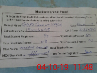 | Attendance Register | Head Teacher | MEA with School | Visit Proof |