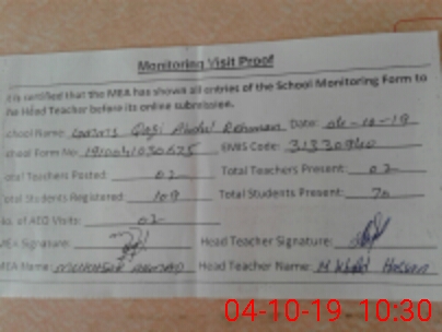 | Monitoring Date: 04-10-2019 | Start Time: 04-10-2019 09:48 AM | End Time: 04-10-2019 10:32 AM | Name of MEA: Mu**** Ah**** | |