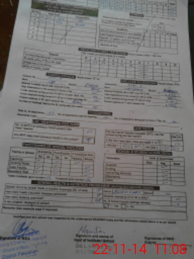 | School Visited by School Health & Nutrition Supervisor (No. of Visits) | 1 | Name1: | REHANA SHARIF | Name2: | NIL |