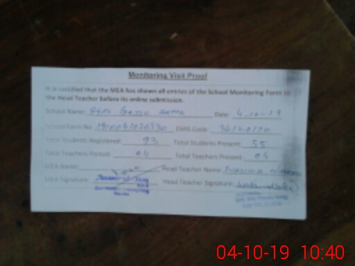 | Attendance Register | Head Teacher | MEA with School | Visit Proof |