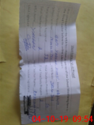 | Attendance Register | Head Teacher | MEA with School | Visit Proof |