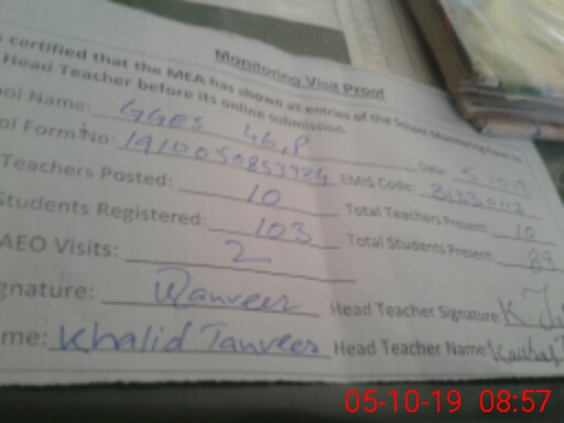 | Certified that this School was Inspected by the Undersigned MEA/DMO Today and the Information Stated Above is as Per Record. | |||||