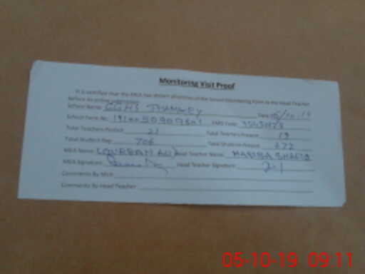 | Attendance Register | Head Teacher | MEA with School | Visit Proof |