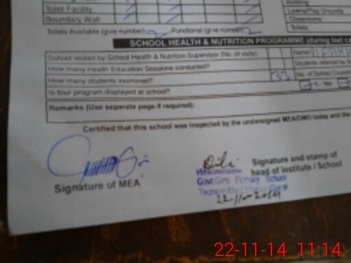 | Certified that this School was Inspected by the Undersigned MEA/DMO Today and the Information Stated Above is as Per Record. | |||||