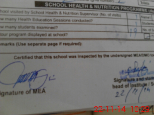 | School Visited by School Health & Nutrition Supervisor (No. of Visits) | 1 | Name1: | Iftikhar | Name2: | O |