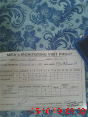 | Attendance Register | Head Teacher | MEA with School | Visit Proof |