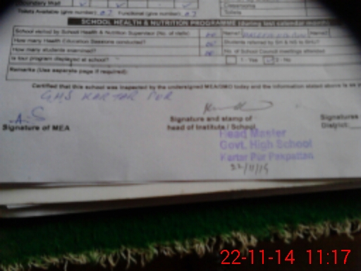 | Certified that this School was Inspected by the Undersigned MEA/DMO Today and the Information Stated Above is as Per Record. | |||||
