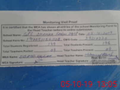 | Attendance Register | Head Teacher | MEA with School | Visit Proof |