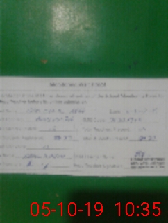 | Monitoring Date: 05-10-2019 | Start Time: 05-10-2019 10:10 AM | End Time: 05-10-2019 10:35 AM | Name of MEA: Ab**** Ka**** | |