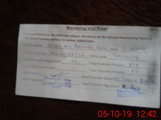 | EMIS Code: 36120174 | Name of School: GGHS MC RAILWAY GATE SHUJABAD | |||