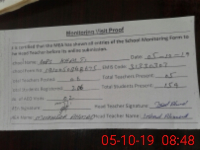 | Certified that this School was Inspected by the Undersigned MEA/DMO Today and the Information Stated Above is as Per Record. | |||||