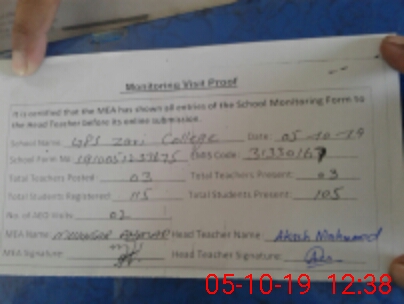 | EMIS Code: 31330167 | Name of School: GPS ZARI COLLEGE | |||