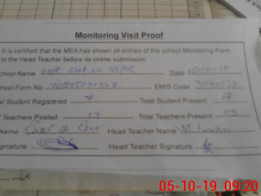 | Certified that this School was Inspected by the Undersigned MEA/DMO Today and the Information Stated Above is as Per Record. | |||||