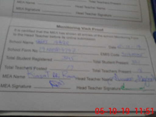 | Certified that this School was Inspected by the Undersigned MEA/DMO Today and the Information Stated Above is as Per Record. | |||||