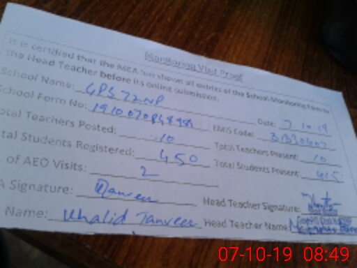 | Certified that this School was Inspected by the Undersigned MEA/DMO Today and the Information Stated Above is as Per Record. | |||||