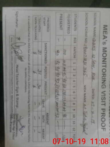 | Certified that this School was Inspected by the Undersigned MEA/DMO Today and the Information Stated Above is as Per Record. | |||||