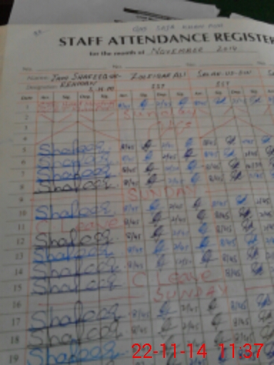 | CNIC | Full Name | Designation | R/C | Absence During Last Calender Month |