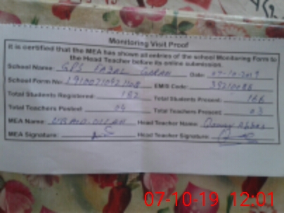 | EMIS Code: 39210088 | Name of School: GES FAZAL GARH P.O BOYLE GANJ | |||