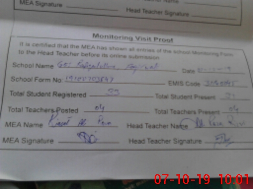 | Certified that this School was Inspected by the Undersigned MEA/DMO Today and the Information Stated Above is as Per Record. | |||||
