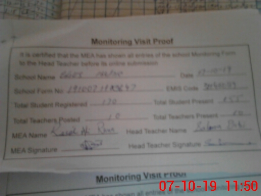 | Attendance Register | Head Teacher | MEA with School | Visit Proof |