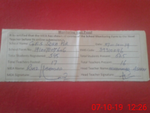 | EMIS Code: 39310096 | Name of School: GES SUKH PUR | |||