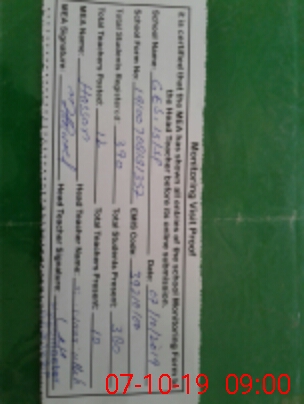 | Attendance Register | Head Teacher | MEA with School | Visit Proof |