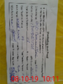 | Monitoring Date: 08-10-2019 | Start Time: 08-10-2019 08:53 AM | End Time: 08-10-2019 10:12 AM | Name of MEA: NA**** AH**** BN**** | |